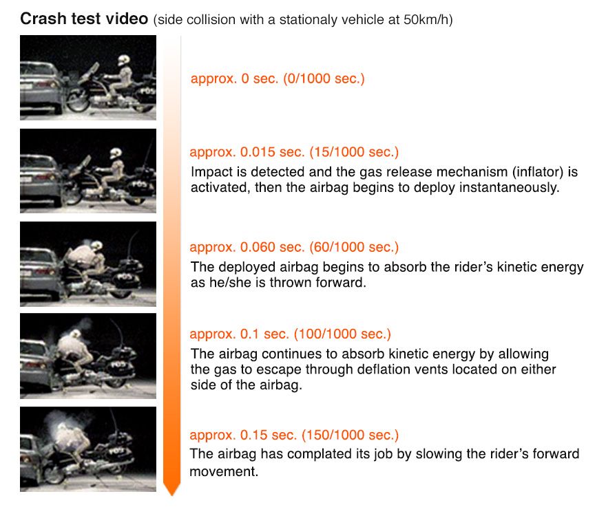 So how is that very precise deployment achieved? Using electronics of course. However these electronics are programmed to finish their tasks within the 0.015 sec and 0.060 sec time boundary to start absorbing the rider's kinetic energy and save their life. This time boundary is what makes the system real-time.