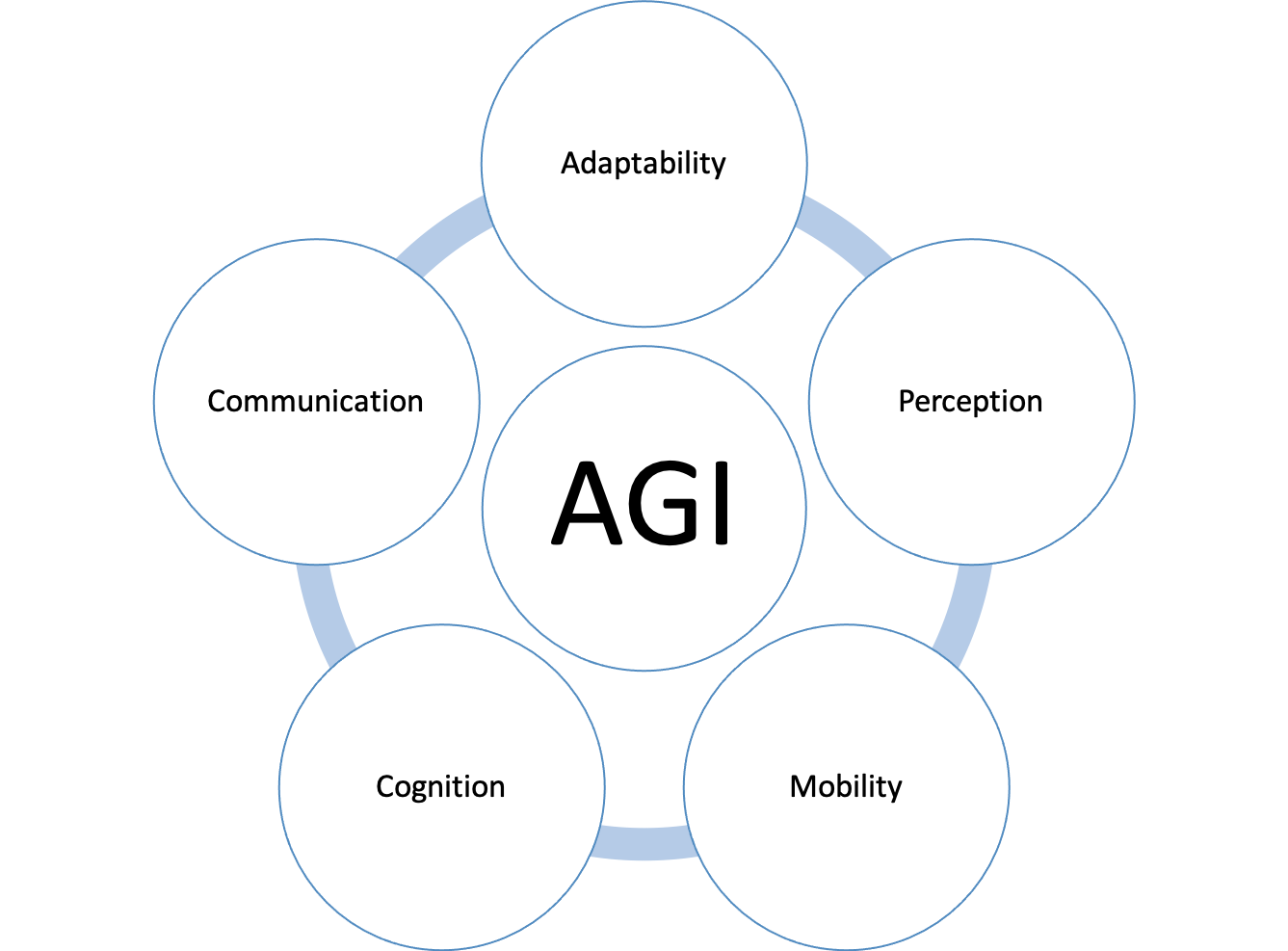 The soceital perception of AI and AGI are very interwined. So to try to investigate AGI in a more formal way, I will define an AGI company as one that is making significant strides in any 2 of the 5 key advancements